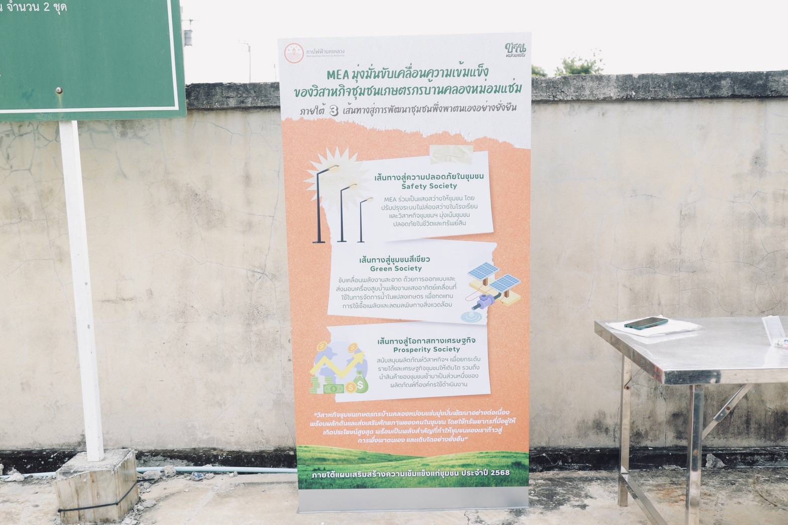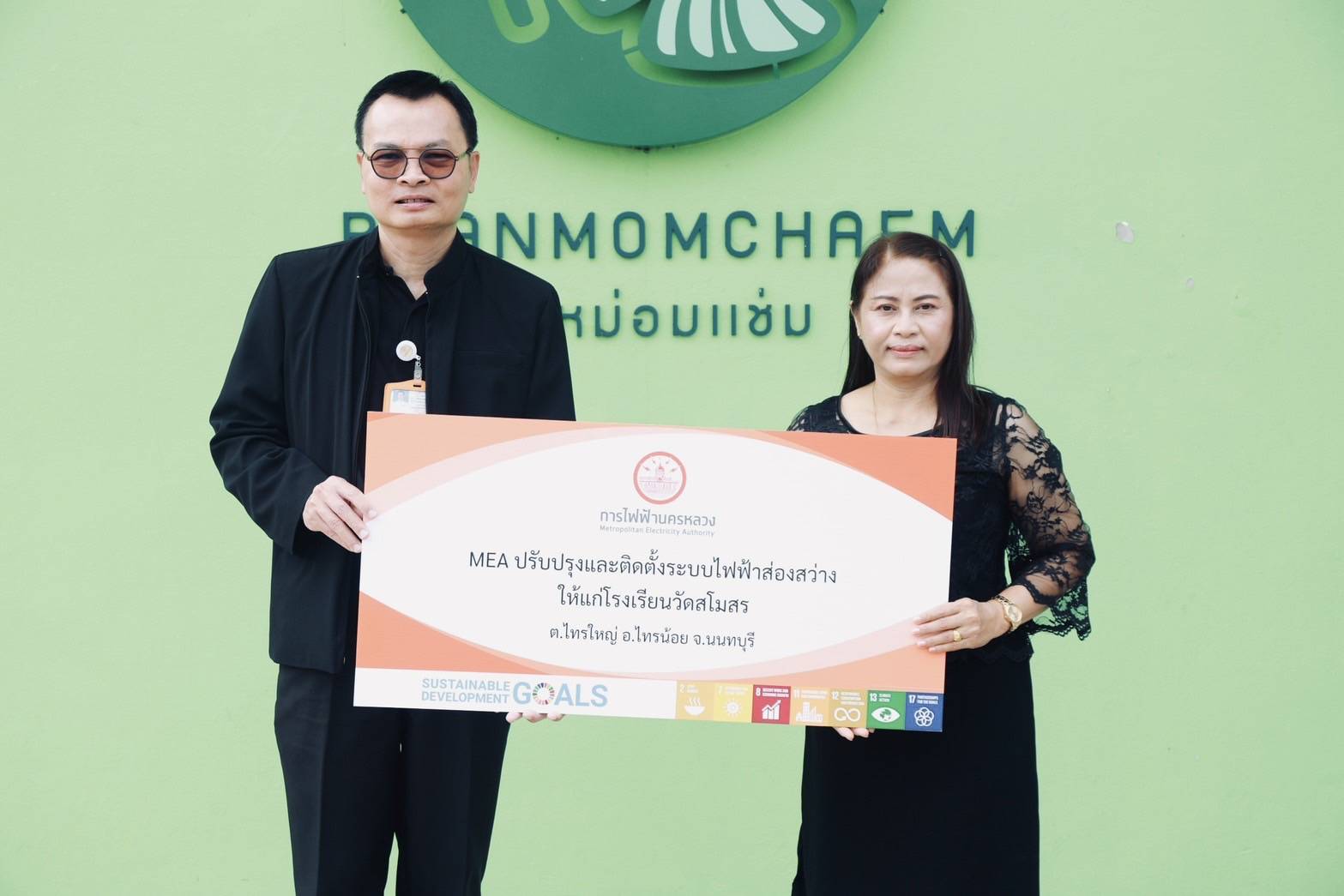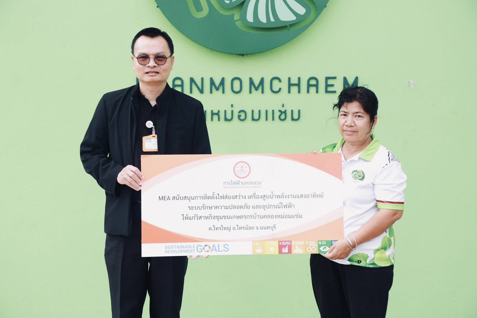 MEA ในฐานะรัฐวิสาหกิจที่จำหน่ายดูแลระบบไฟฟ้าสังกัดกระทรวงมหาดไทย ในพื้นที่กรุงเทพมหานคร นนทบุรี และสมุทรปราการ โดยมุ่งเน้นการให้บริการไฟฟ้าที่มีคุณภาพ ปลอดภัย และเชื่อถือได้ รวมถึงความรับผิดชอบต่อสังคม และสิ่งแวดล้อม โดยเฉพาะการนำองค์ความรู้ ความชำนาญด้านระบบไฟฟ้าขององค์กร มาช่วยพัฒนาชุมชนในพื้นที่เขตจำหน่าย จึงเล็งเห็นถึงความสำคัญของชุมชนบ้านคลองหม่อมแช่ม ที่เป็นพื้นที่เกษตรกรรมขนาดใหญ่ เพาะปลูกใบบัวบกเป็นจำนวนมาก และพัฒนาแปรรูปใบบัวบกที่ผ่านการรับรองมาตรฐาน มีผลิตภัณฑ์ที่หลากหลาย สร้างอาชีพและรายได้ให้กับคนในชุมชน จึงได้ดำเนินการติดตั้งไฟส่องสว่าง ระบบรักษาความปลอดภัย อุปกรณ์ไฟฟ้า และเครื่องสูบน้ำพลังงานแสงอาทิตย์ เพื่อสนับสนุนดำเนินงานของวิสาหกิจชุมชนเกษตรกรบ้านคลองหม่อมแช่ม และ MEA ได้ปรับปรุงและติดตั้งระบบไฟส่องสว่างให้แก่โรงเรียนวัดสโมสร เพื่อเพิ่มความปลอดภัยและสนับสนุนการใช้พลังงานสะอาดในชุมชนและสถานศึกษา ก่อให้เกิดการวางรากฐานสู่ความยั่งยืนในระยะยาว