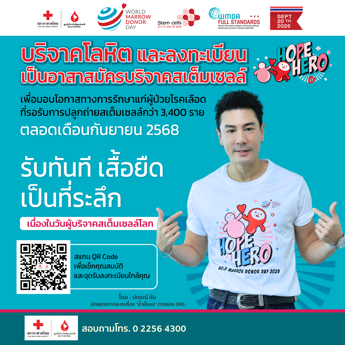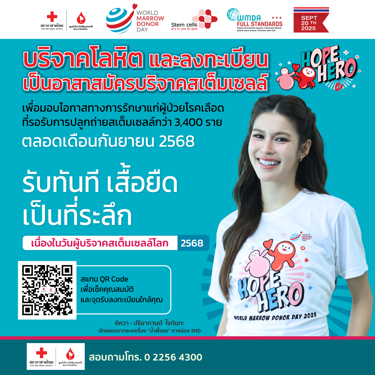 #thankyoudonor #hopehero #WorldMarrowDonorDay2025 #บริจาคสเต็มเซลล์ #อาสาสมัครบริจาคสเต็มเซลล์ #โรคเลือด #ธาลัสซีเมีย #ลูคีเมีย #มะเร็งเม็ดเลือดขาว #ไขกระดูกฝ่อ #มะเร็งต่อมน้ำเหลือง #บริจาคเลือด #ศูนย์บริการโลหิตแห่งชาติ