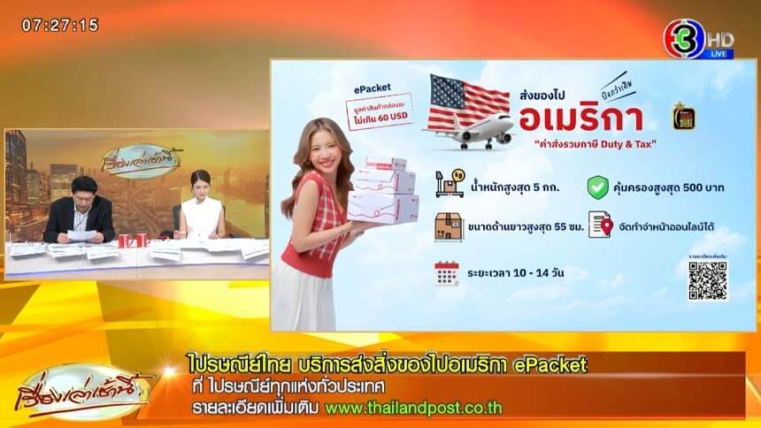 'ไปรษณีย์ไทย' บริการ ePacket ส่งสิ่งของไปสหรัฐอเมริกา