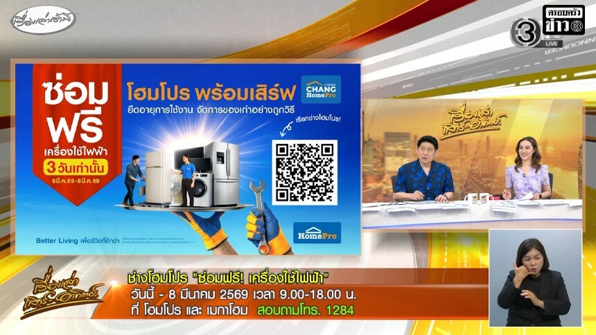 กลับมาอีกครั้ง! ช่างโฮมโปร “ซ่อมฟรี! เครื่องใช้ไฟฟ้า” ที่โฮมโปรและเมกาโฮม ทุกสาขา วันนี้ – 8 มี.ค.69