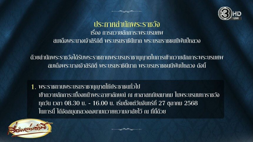 สำนักพระราชวัง เปิดให้ประชาชน เข้าถวายสักการะพระบรมศพ 'สมเด็จพระพันปีหลวง'
