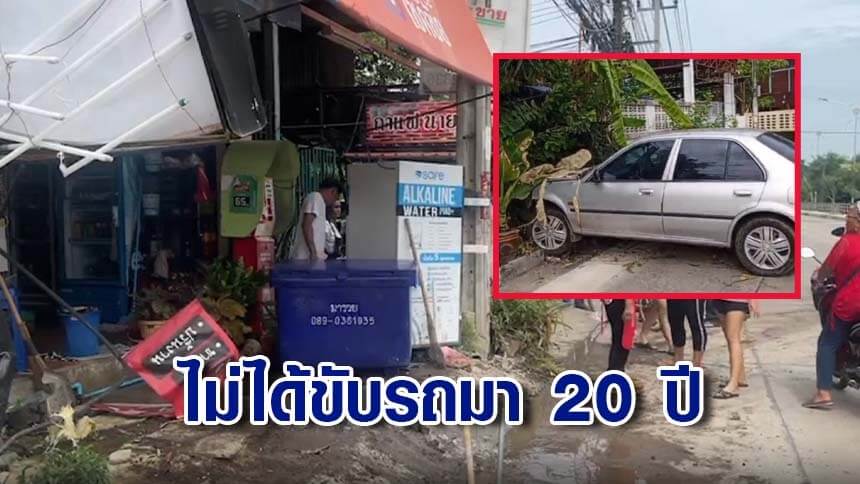 ไม่ได้ขับรถมา 20 ปี ยาย 74 ตกใจเหยียบคันเร่ง เสยหน้าร้านค้า-กำแพงบ้านพังยับ