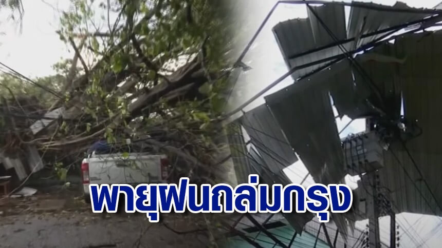 พายุฝนถล่มกรุง! ต้นไม้ล้มขวางถนน หลังคาปลิวทับบ้านเรือน-รถยนต์ยุบไปครึ่งคัน