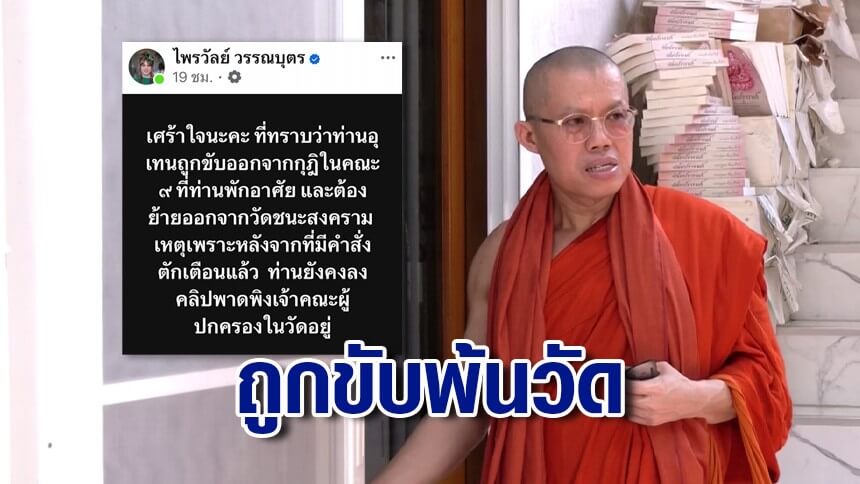 มติคณะสงฆ์วัดชนะสงคราม ขับ “พระมหาอุเทน” พ้นวัด มีผลทันทีตั้งแต่วันที่ 8 ตุลาคม ที่ผ่านมา ให้เหตุผลมีวิวาทะกับฆราวาสและพูดพาดพิงเจ้าคณะจึงสั่งลงโทษ ภาคทัณฑ์