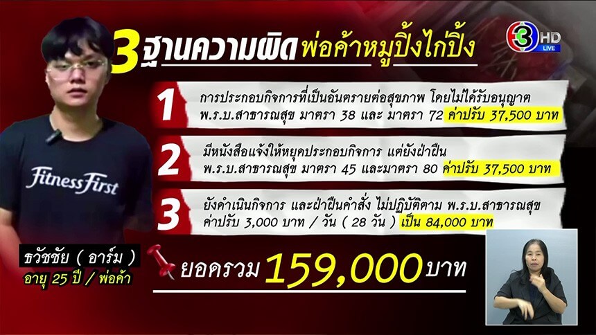 เทศบาลแจงปรับพ่อค้าไก่ปิ้ง 1.5 แสน ชี้ตักเตือนแล้วแต่เพิกเฉย-คนร้องชี้บ้านมีไว้อยู่อาศัย ไม่ใช่เพื่อประกอบกิจการ