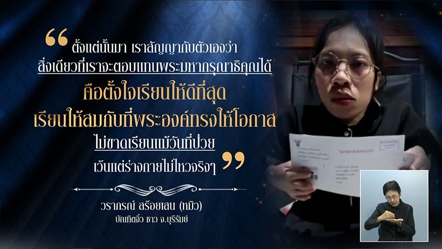 ผู้สื่อข่าวไปพูดคุยกับ น.ส.วราภรณ์ หรือ หมิว เปิดใจว่า ตนเป็นเด็กมีปมด้อยมาตั้งแต่เกิด คือ พิการร่างกาย แทบจะไม่มีโอกาสทางสังคม ยอมรับว่าไม่มีทางออกของชีวิต อยากเรียนครอบครัวก็ยากจน จึงตัดสินใจเขียนจดหมายถึงพระองค์ แต่ความหวังน้อยมากเพราะมีคนยื่นไปเป็นล้านคน วันหนึ่งเห็นจดหมายมาถึงบ้าน อ่านดูพบว่ามาจากสำนักพระราชวัง ตอนนั้นตื่นเต้นจนพูดไม่ออกเพราะรู้ว่าข้างในจะต้องเป็นข่าวดีอย่างแน่นอน