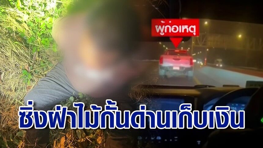 สกัดจับกระบะ ซิ่งหนีฝ่าไม้กั้นด่านเก็บเงิน 2 ด่านรวด สุดท้ายจนมุม ชนแท่งแบริเออร์