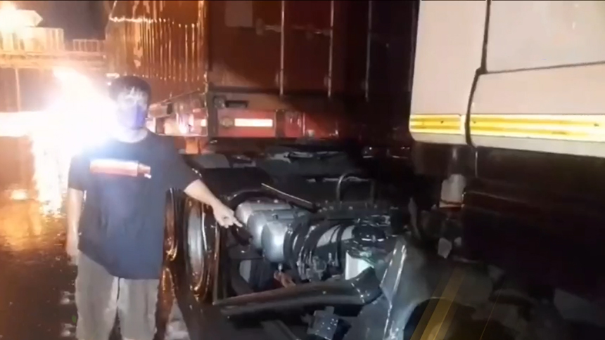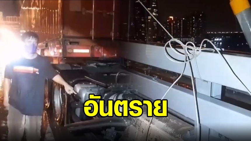 ลวดสลิงหล่นจากสะพานภูมิพล ร่วงเกี่ยว จยย. - รถบรรทุกพ่วง