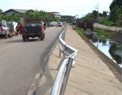 หญิงวัย 61 ขับรถตกใจเหยียบคันเร่งพุ่งชนดะรถยนต์-จยย. ก่อนพุ่งชนราวสะพานหวิดตกคลอง
