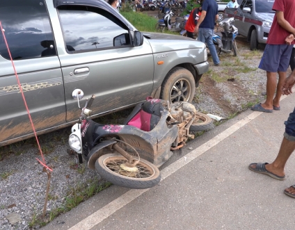 มาถึงที่เกิดเหตุ พบรถยนต์ สีขาว หมายเลขทะเบียน ตราด สภาพหน้ารถพังเสียหายยับเยิน ทราบชื่อผู้ขับขี่ว่า นางกมลา อายุ 61 ปี ยืนรอเจ้าหน้าที่อยู่ริมถนน สภาพตัวสั่นเทาอยู่ในอาการตกใจ ห่างออกไปประมาณ 100 เมตร พบรถยนต์กระบะ สีเทา หมายเลขทะเบียน ตราด สภาพด้านหน้าพังเสียหาย ทราบชื่อเจ้าของรถว่า นางสาว ประคองศรี อายุ 50 ปี เป็นแม่ค้าขายสับปะรดอยู่ในตลาดนัด บริเวณหน้ารถกระบะ พบรถจักรยานยนต์ของชาวบ้านที่เข้ามาซื้อของภายในตลาดนัดถูกชนล้มพังเสียหายอีก 4 คัน