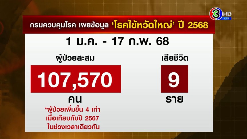 กรมควบคุมโรค เตือนไข้หวัดใหญ่ระบาด ปี 68 แค่เดือนกว่า มีผู้ป่วยเพิ่มกว่าแสนราย เสียชีวิต 9 ราย ชี้ปีนี้ฤดูหนาวยาวนานกว่าปีก่อน ๆ