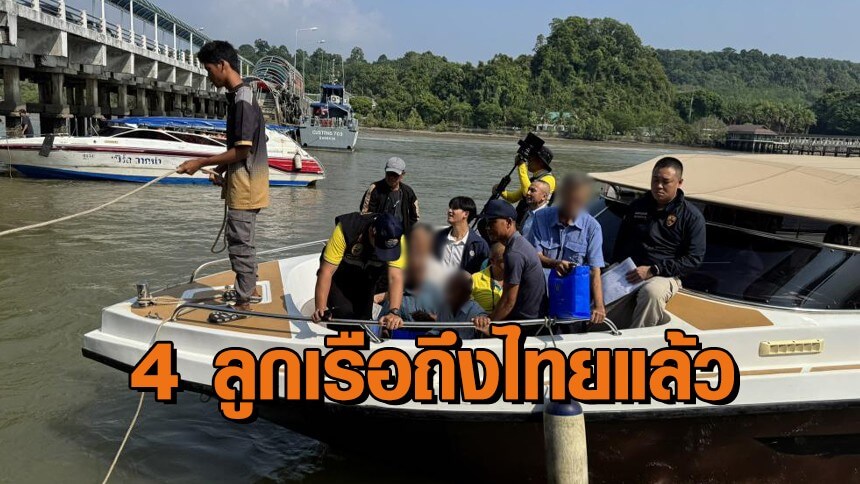 4 ลูกเรือประมงไทย กลับถึงฝั่งระนองแล้ว