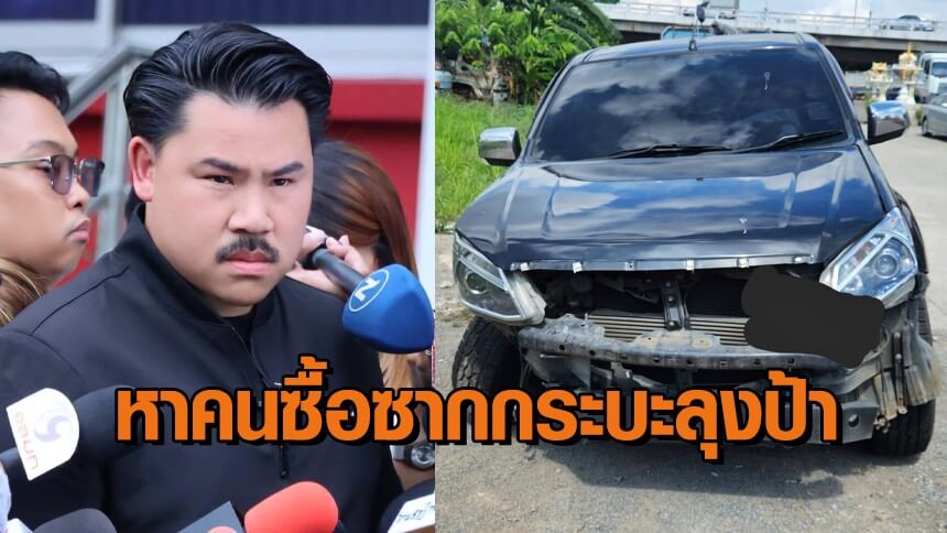 “กัน จอมพลัง” ประกาศหาคนซื้อซากกระบะลุงป้า ซัด “พีช” คู่กรณียังเงียบ ไร้ติดต่อช่วยซ่อม