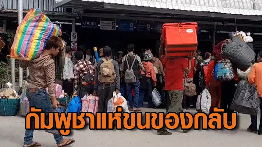 “แรงงานกัมพูชา” แห่ขนของกลับบ้าน เผยหากสถานการณ์คลี่คลายแล้วจะกลับมาทำงานที่ไทยใหม่