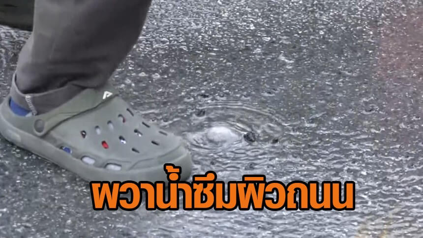 ชาวบ้านผวา น้ำซึมผิวถนนห่างถนนทรุด 2 กม. เจอสาเหตุแล้ว ที่แท้ท่อประปาเก่ารั่ว