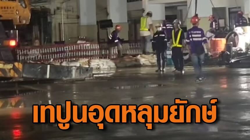 ต่อมา เจ้าหน้าที่ได้มีการนำรถเครนเข้าพื้นที่บริเวณหน้าหลุม เพื่อยกวัสดุสิ่งของ เช่น เสาไฟฟ้า, หม้อแปลงไฟฟ้า, ท่อน้ำประปา และ เศษวัสดุอื่นๆ ที่อยู่ภายในหลุม นำขึ้นมาเท่าที่จะทำได้ ก่อนที่จะประเมินสถานการณ์อีกครั้ง เรื่องของการถมพื้นที่ให้สูงขึ้น ด้วยดินและหินคลุก ซึ่งต้องทำด้วยความระมัดระวัง ส่วนหากคืนนี้เกิดฝนตกลงมาในพื้นที่ เจ้าหน้าที่ก็ได้มีแผนรับมือโดยการตั้งเครื่องสูบน้ำของสำนักการระบายน้ำกรุงเทพมหานคร เอาไว้แล้ว