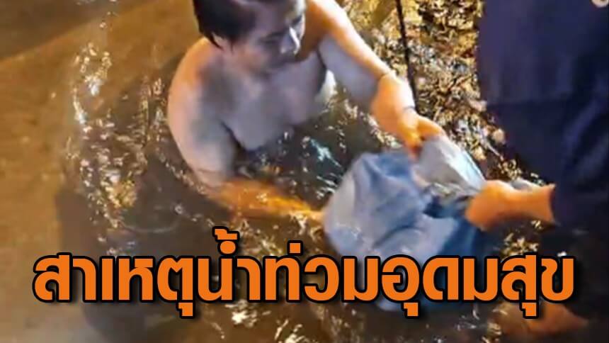 หลังจากตรวจสอบแล้วพบว่า สาเหตุที่ทำให้น้ำท่วมปากซอยอุดมสุข มาจากกระสอบทรายบล็อกน้ำเพื่อล้างท่อ ที่ผู้รับเหมาที่รับล้างท่อ เอาไปอุดบล็อกน้ำไว้ขณะทำการล้างท่อ ซึ่งปกติผู้รับเหมาจะนำกระสอบทรายออกทุกคืน แต่วันที่เกิดเหตุ กลับไม่ได้นำกระสอบทรายออก ทำให้น้ำไม่สามารถไหลผ่านได้ และท่วมขังถนน