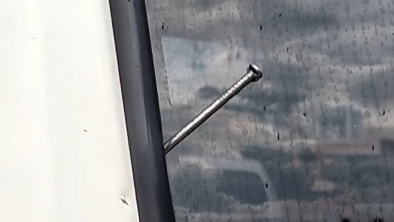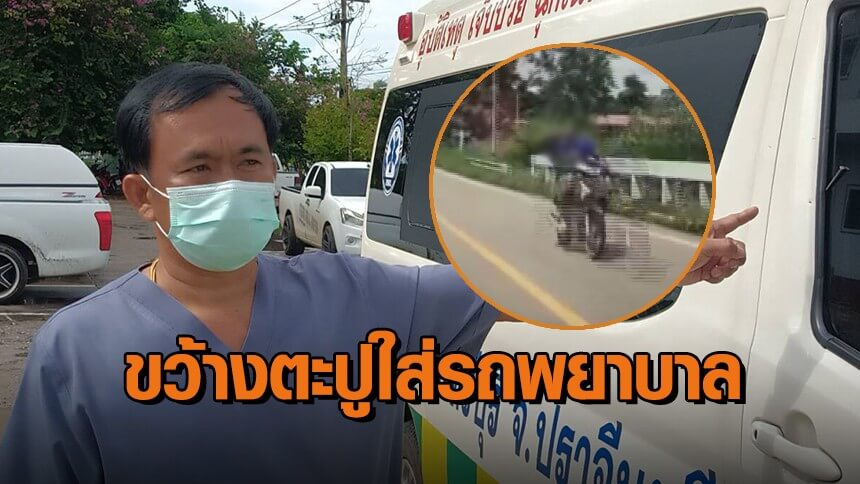 รวบหนุ่มหลอนยา ขี่ จยย.ขว้างตะปูใส่รถกู้ชีพ ขณะไปรับผู้ป่วยหนักส่งโรงพยาบาล ตะปูฝังขอบหน้าต่าง กระจกรถแตก พบรถชาวบ้านเสียหายอีก 4 คัน