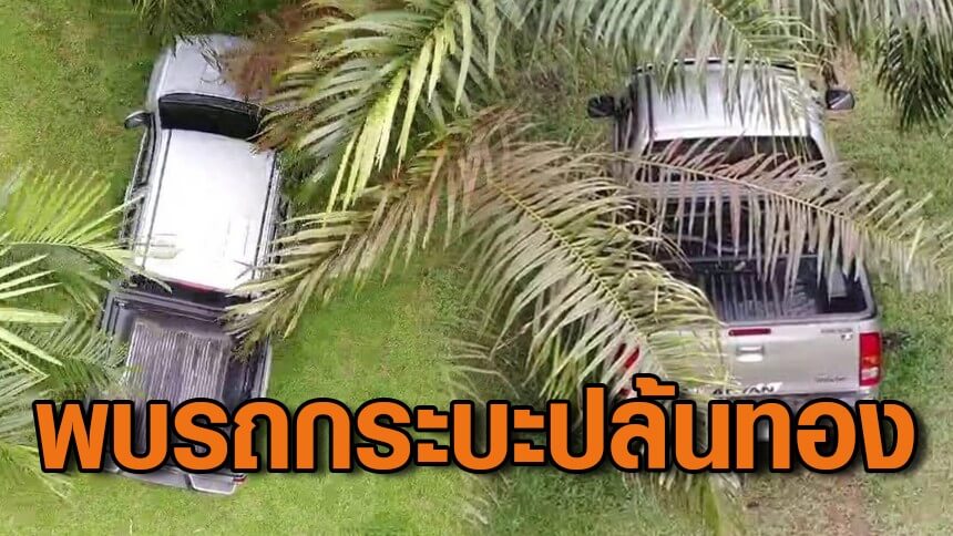 พบรถกระบะ 2 คัน คนร้ายใช้ปล้นทองกลางห้างสุไหงโกลก จอดทิ้งในสวนปาล์ม