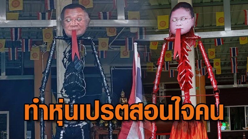 “วัดเสือดาว” ทำหุ่นเปรตหน้า “ฮุนเซน-มาลี” สอนใจคนอย่าคิดโลภ-โกหก ผู้ใหญ่บ้านลั่นทางเราก็ไม่ยอม สู้กลับด้วยความคิด ธรรมะ