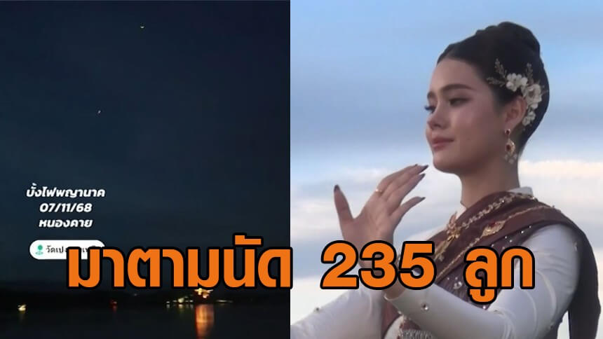 บั้งไฟพญานาค มาตามนัด นักท่องเที่ยวแห่ชมคึกคักคืนวันออกพรรษา ไม่ผิดหวัง หนองคายนับได้ 235 ลูก ใน 11 จุด ด้าน เดนิส เจลีลชา ดาราสาวจากภาพยนตร์ ธี่หยด 3 มาร่วมรำบวงสรวงพญาพิสัยสัตนาคราชกับชาวโพนพิสัย