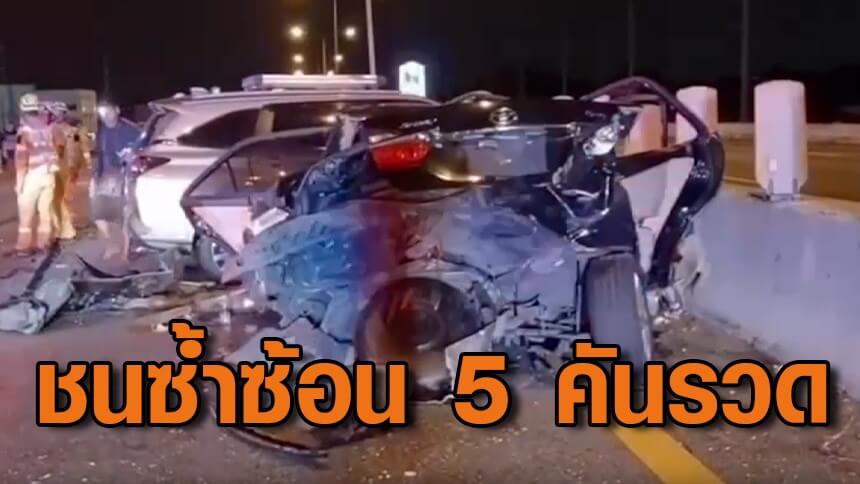 อุบัติเหตุซ้ำซ้อน รถชนกันยับ 5 คันรวด เสียชีวิต 3 ราย สาว นศ.พยาบาล ลงช่วยโบกรถ ถูกชนดับสลด