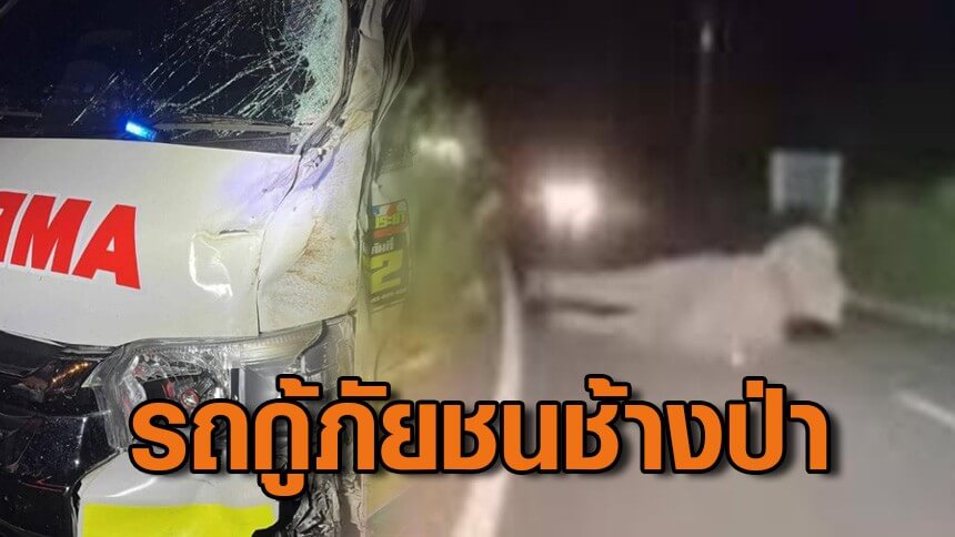 รถกู้ภัยพุ่งชนช้างป่าโผล่เดินตัดหน้า ขณะพาคนเจ็บส่งโรงพยาบาล