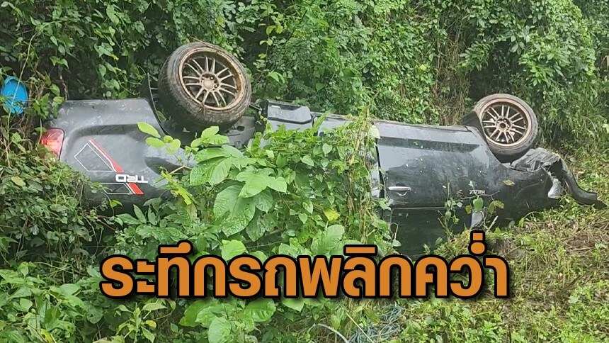 นาทีชีวิต! รถหมุนพลิกคว่ำกลางฝน บนเขาวังเงิน 2 หนุ่มติดในรถ ใช้ของแข็งทุบกระจกออกมาได้