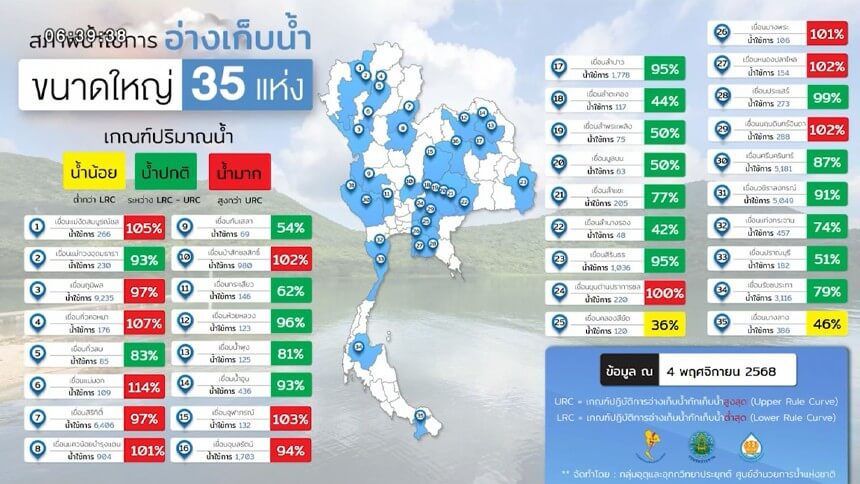 รับมือฝนตกหนัก 7-9 พ.ย. อิทธิพล 'พายุคัลแมกี' - เช็กสถานการณ์น้ำเขื่อนหลัก