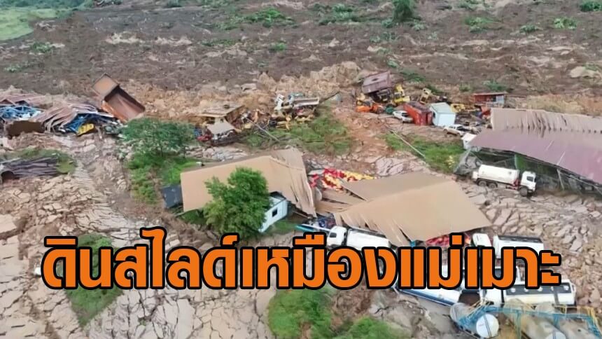 สภาพที่ทิ้งดินเหมืองแม่เมาะ ดินสไลด์ ออฟฟิศ-รถ-เครื่องจักร เสียหายยับ
