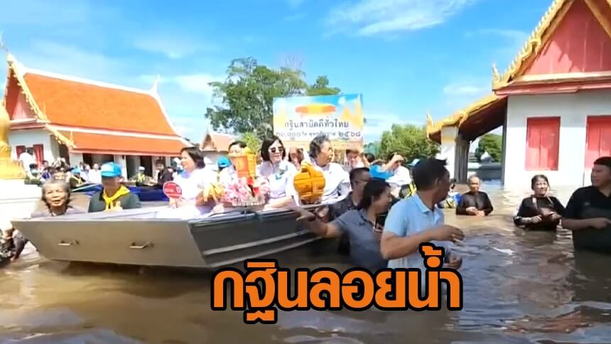 อยุธยา กฐินลอยน้ำ เจ้าอาวาสพลาดกำหนดงานช่วงปลายกฐินน้ำลดยังถูกน้ำท่วม หลังเขื่อนปล่อยน้ำเพิ่มน้ำขึ้นจนท่วมวัดรอบที่ 5 ชาวบ้านลอยเรือเวียนโบสถ์สามรอบกลางน้ำ