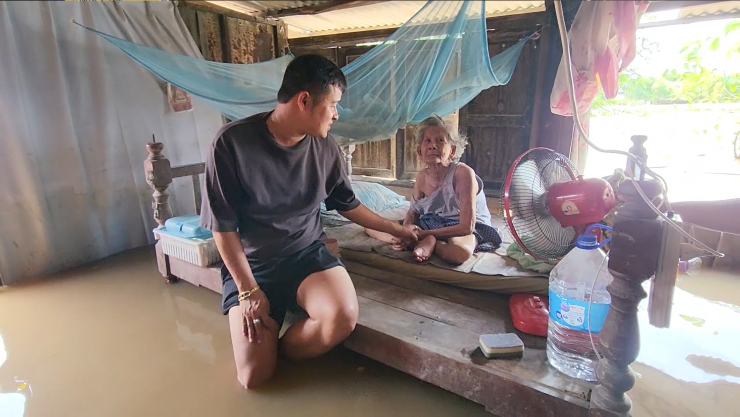 ด้าน ยายแจ่ม อายุ 87 ปี ป่วยติดเตียงอยู่กับลูกสาว บ้านถูกน้ำท่วม ไม้ฝาบ้านที่เป็นสภาพเก่าหลุดลอยไปกับน้ำได้รับความเสียหาย ทั้งสองคนต้องทนอยู่ในสภาพน้ำท่วมพื้นบ้านสูงกว่า 40 เซนติเมตร สิ่งของเครื่องใช้ถูกยกหนุนหนีน้ำไว้แล้ว ในบ้านมีพื้นที่ไว้สำหรับทั้งสองคนนอนเพียงอย่างเดียว และตอน้ำที่ขึ้นอย่างต่อเนื่องจ่อท่วมเตียงยายแจ่ม และที่นอนของลูกสาวแล้ว ที่สำคัญทั้งสองคนไม่มีความชำนาญการหนุนบ้านและขาดแคลนไม้ยังไม่รู้ชะตากรรมชีวิตว่าจะทำอย่างไร