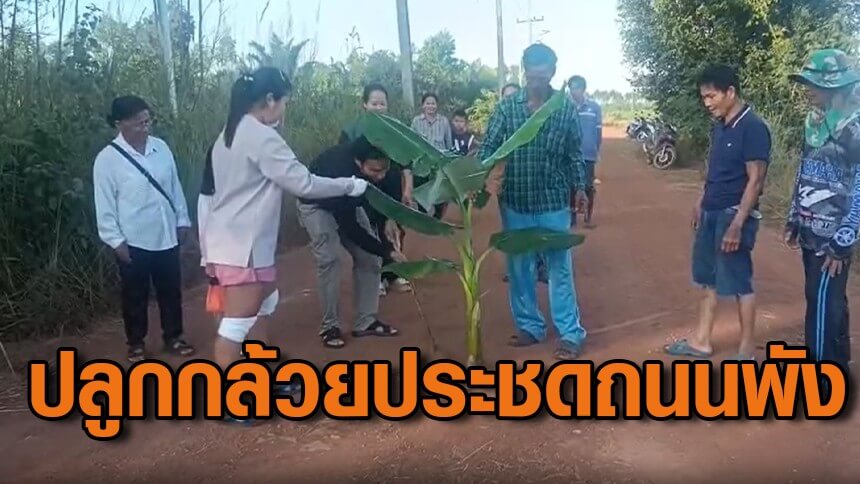 ชาวบ้านสุดทน ปลูกกล้วยประชดถนนเป็นหลุม รถล้มบาดเจ็บหลายราย