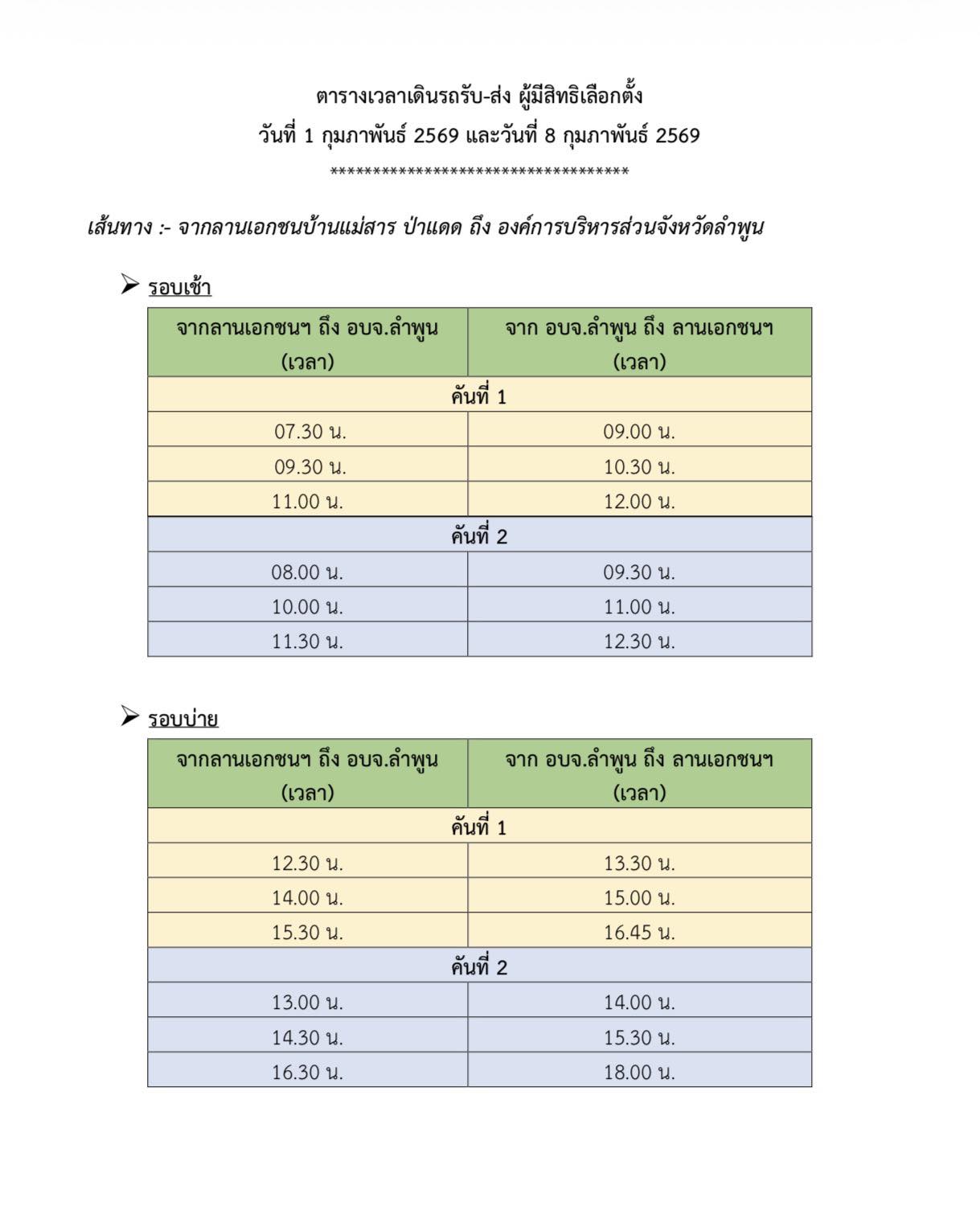 โดยเป็นความร่วมมือในการให้บริการประชาชนของสำนักงานคณะกรรมการการเลือกตั้งจังหวัดลำพูน และองค์การบริหารส่วนจังหวัดลำพูน ฟรีตลอดทุกเส้นทาง