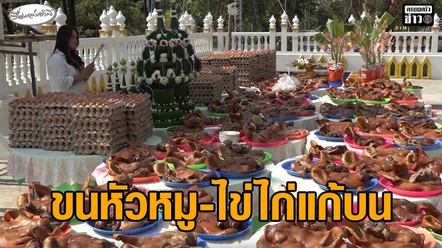 นักธุรกิจสาวขายที่ดิน ขนหัวหมู 100 หัว ไข่ไก่ 10,000 ฟอง แก้บนหลวงพ่อหยกขาว