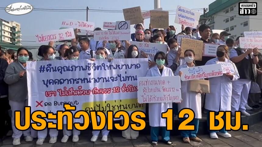 วันที่ 16 มีนาคม 2569 เวลา 08.30 น. บริเวณลานหน้าเสาธง โรงพยาบาลเชียงรายประชานุเคราะห์ อำเภอเมืองเชียงราย จังหวัดเชียงราย กลุ่มพยาบาลวิชาชีพกว่า 300 คน รวมตัวแสดงพลังคัดค้านแนวทางการกำหนดเวลาปฏิบัติงานใหม่ไม่เกิน 12 ชั่วโมงต่อวัน โดยระบุว่า แนวทางดังกล่าวอาจไม่สอดคล้องกับภาระงานจริงในโรงพยาบาลของรัฐ พร้อมยื่นหนังสือถึงผู้บริหารเพื่อขอให้ทบทวนนโยบายดังกล่าว