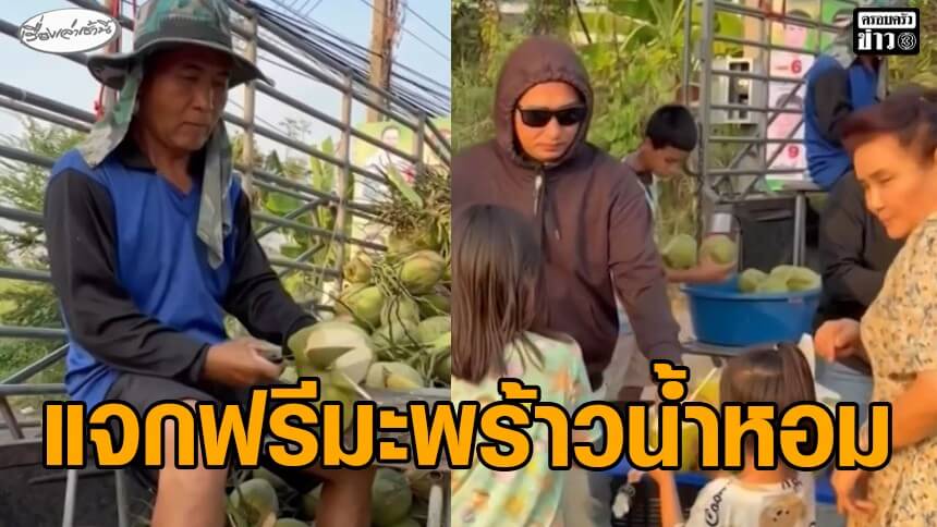 น้ำใจชาวสวน นำมะพร้าวน้ำหอมมาแจกฟรี หลังราคาตกต่ำหนัก แทนที่จะปล่อยเหลือทิ้งเลยนำมาแบ่งปัน โดยขนมาจากสวนตนเอง และรับซื้อจากชาวสวนในพื้นที่ ช่วยเพื่อนเกษตรกรในยามวิกฤต
