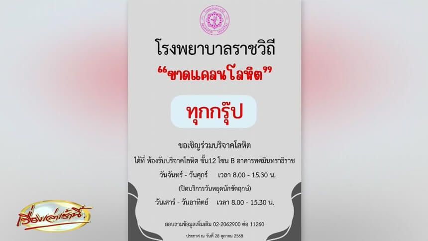 ชวนบริจาคเลือด! หลายโรงพยาบาล ขาดแคลนโลหิต ทุกกรุ๊ป