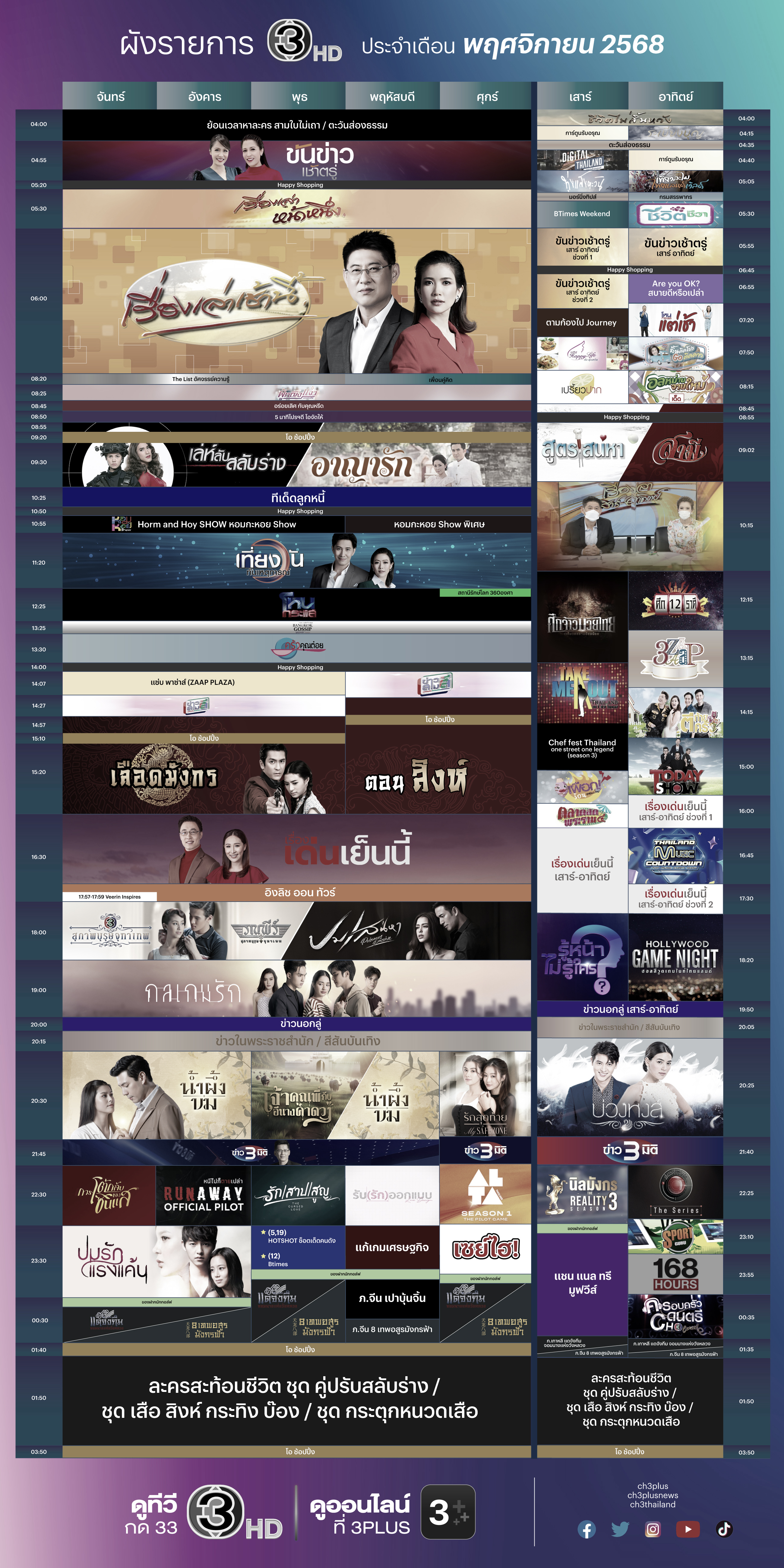 | 13:15 - 14:15 | รายการ 3 แซ่บ |