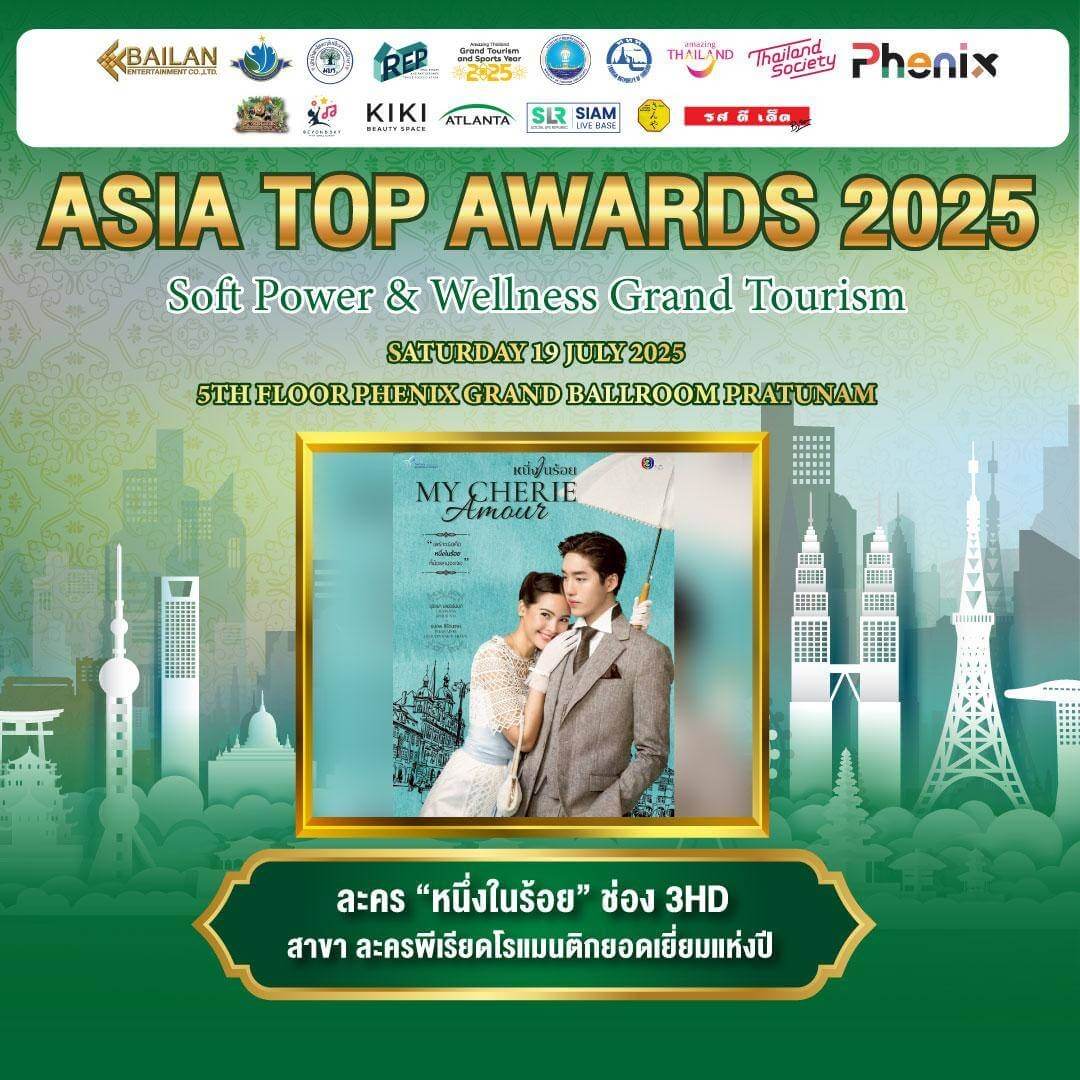 ช่อง 3 สุดปัง! เดินหน้ากวาดรางวัลอย่างต่อเนื่อง ล่าสุดกับงานประกาศรางวัล ASIA TOP AWARDS 2025 ครั้งที่ 4 ประจำปี 2568 จัดขึ้นเมื่อวันเสาร์ที่ 19 กรกฎาคม 2568 ณ ชั้น 5 Grand Ballroom Phenix ประตูน้ำ เพื่อยกย่องความสำเร็จและเชิดชูเกียรติ ให้กับ ภาครัฐ รัฐวิสาหกิจ ภาคเอกชน ศิลปิน นักแสดง และบุคคลทั่วภูมิภาคเอเชีย