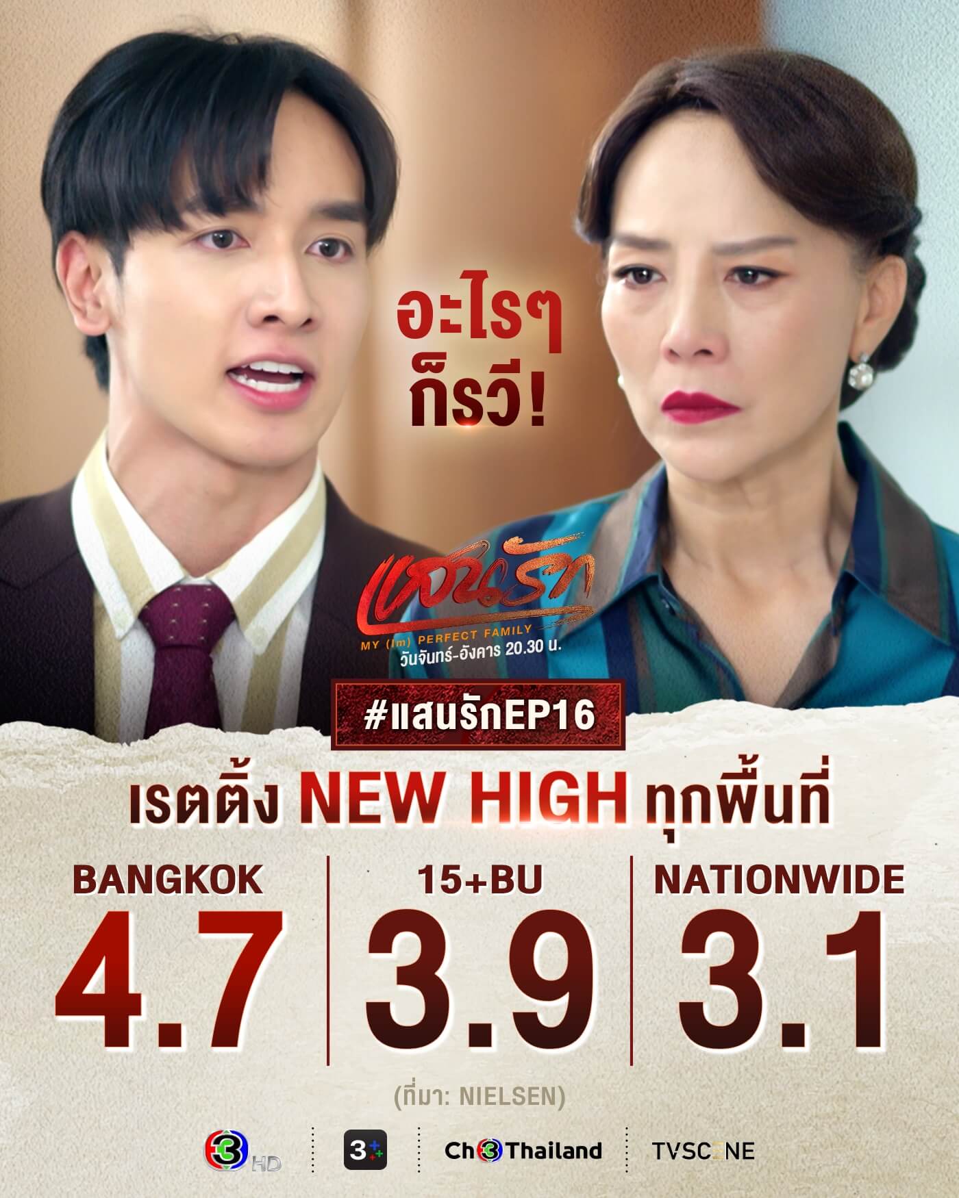 “แสนรัก” เดือดไฟลุก! ทุบเรตติ้ง New High 2 อาทิตย์ติด! “กองทัพ พีค – พีพี” ของขึ้นฟาดดราม่าฉ่ำถูกใจคนดู