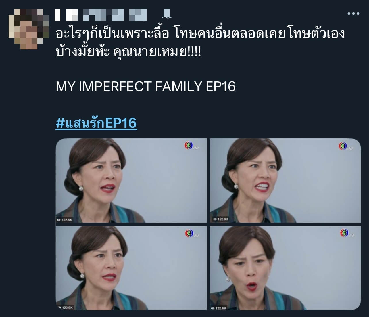 ปังสมเป็นละครตัวแม่ ตัวมัม จริง ๆ ความสัมพันธ์ของคนในครอบครัวตระกูลตรงพานิชย์ จะหันมาปรับความเข้าใจกันได้อย่างไร ต้องติดตามในละคร เรื่อง “แสนรัก” ทุกวันจันทร์ – อังคาร เวลา 20.30 น. ทางช่อง 3 ดูทีวีกด 33 ดูมือถือกด 3Plus