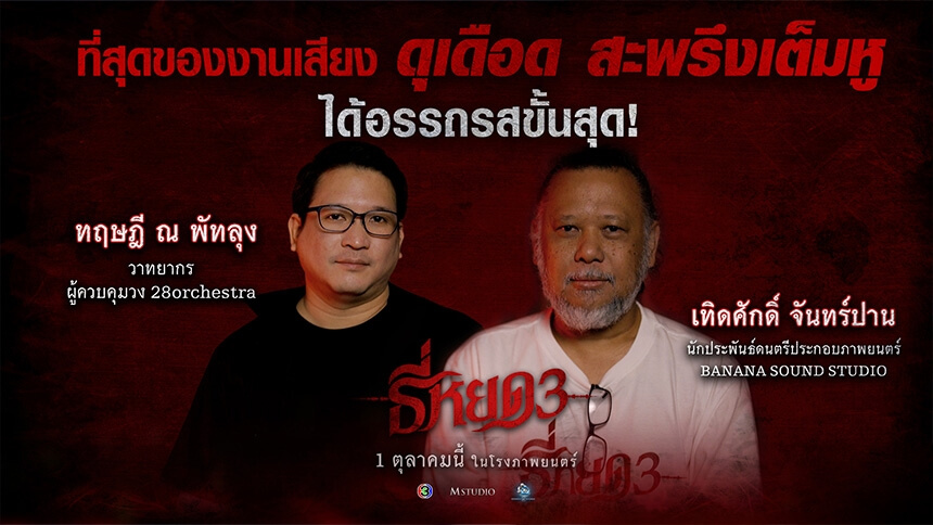 ที่สุดของงานเสียง ดุเดือด สะพรึงเต็มหู ได้อรรถรสขั้นสุด! "ทฤษฎี ณ พัทลุง" วาทยากร ผู้ควบคุมวง 28orchestra "เทิดศักดิ์ จันทร์ปาน" นักประพันธ์ดนตรีประกอบภาพยนตร์ BANANA SOUND STUDIO ธี่หยด 3 | 1 ตุลาคมนี้ ในโรงภาพยนตร์ ทั้งระบบปกติ และบนจอยักษ์ IMAX